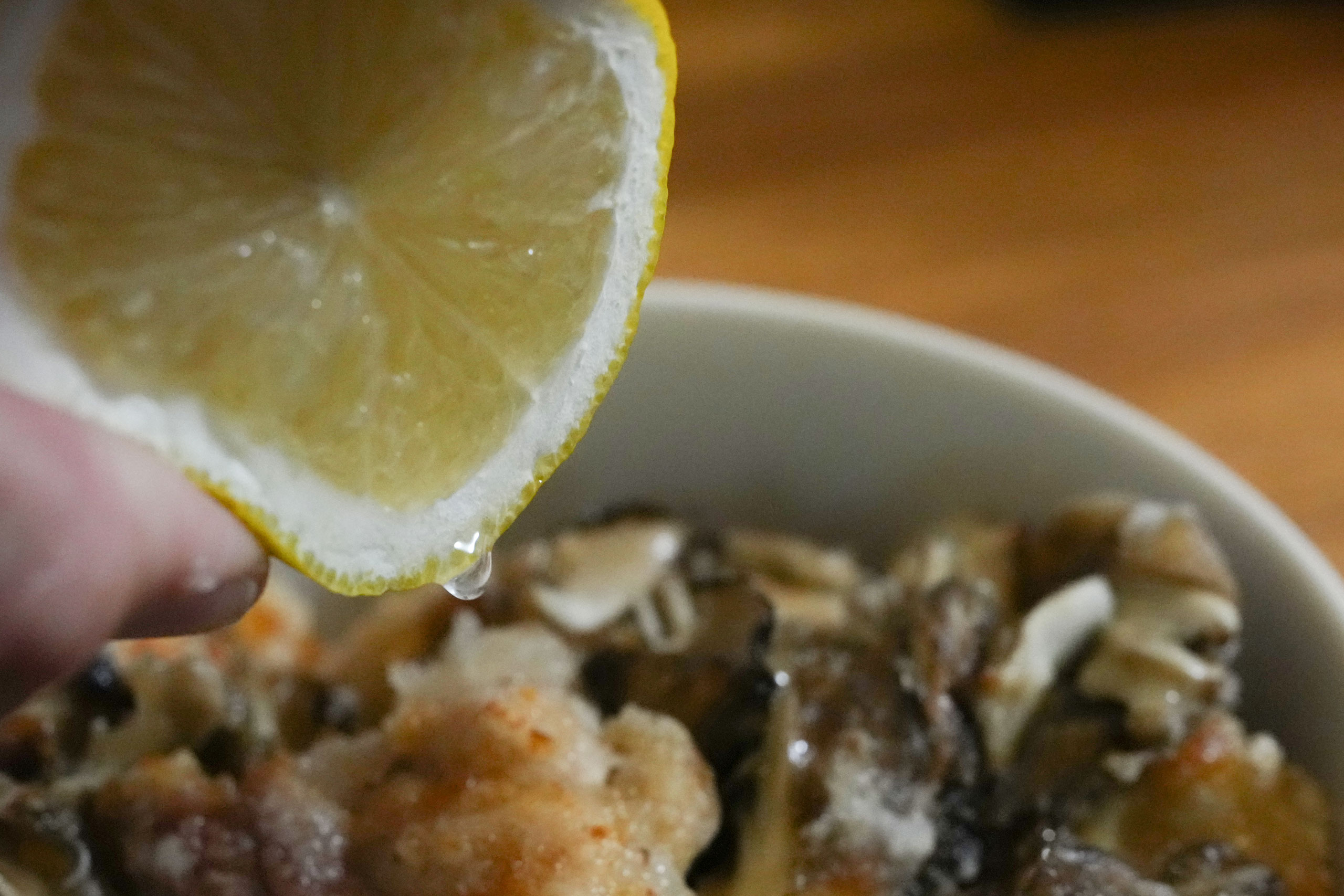 ※ランチでつくったからあげ&まいたけ丼にレモンを by Sony α1 Ⅱ+50-150mmF2